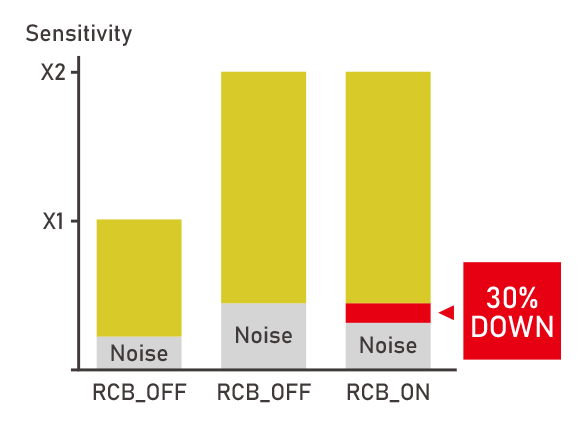 本機能により、光ショットノイズや暗電流ノイズといったランダムノイズを抑え、リアルタイムで感度を2倍にすることが可能です。